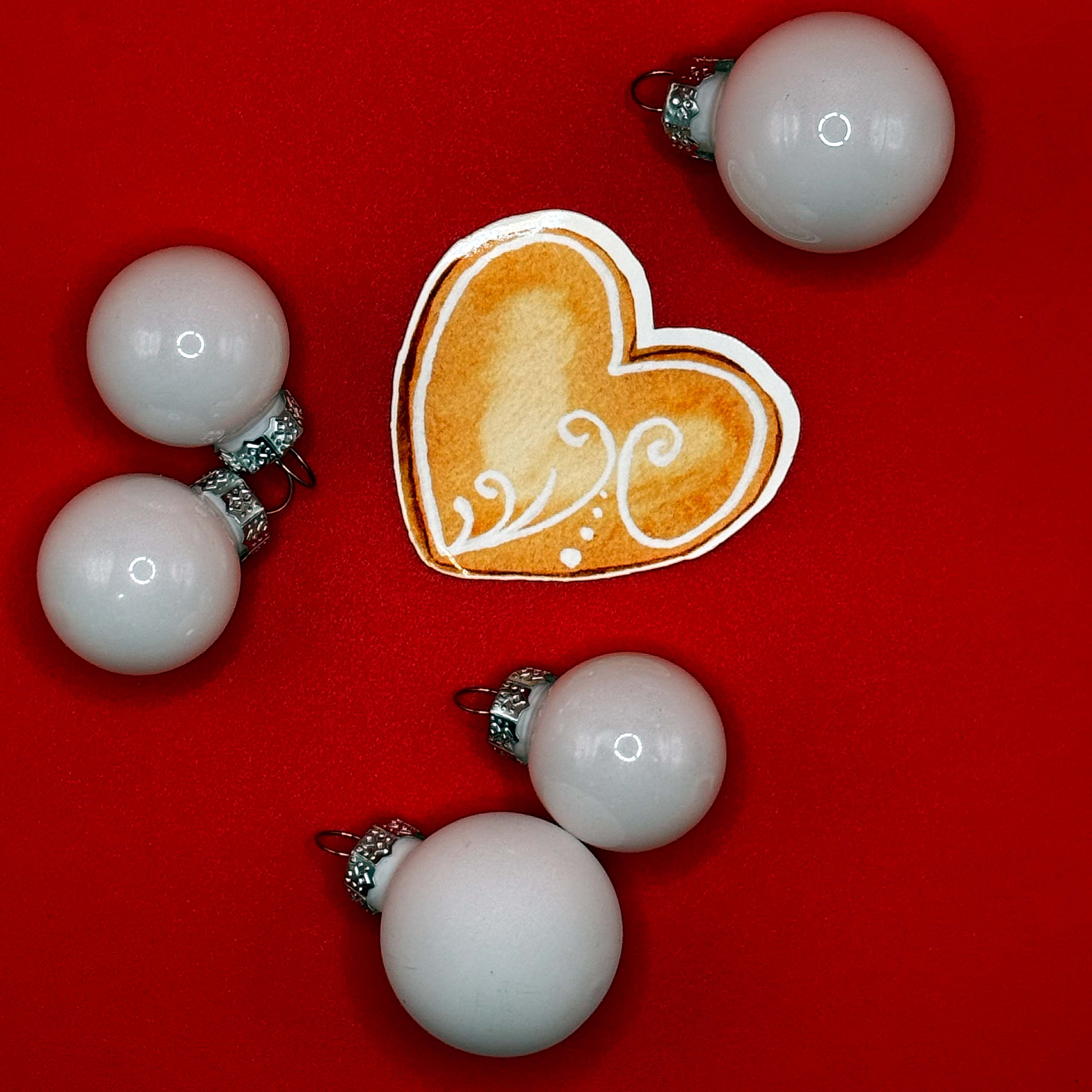 Dieser Lebkuchenherz Vinylsticker zeigt ein klassisches Lebkuchenherz mit asymmetrischer weißer Zuckerverzierung. Die Originalillustration wurde mit Aquarellfarben auf Aquarellpapier handgemalt, anschließend digitalisiert und auf weiße Vinylfolie gedruckt.